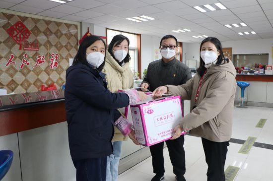 送上慰問禮盒。南京銀行杭州蕭山支行供圖