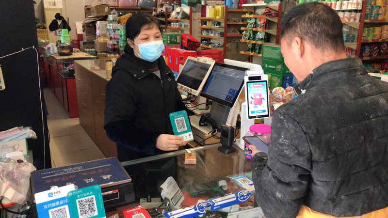 紹興市零售戶(左)通過智能機具為消費者提供服務。錢立崟攝