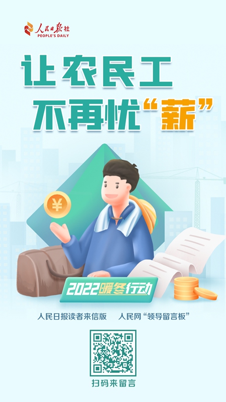 為切實保障農民工合法權益,不斷提高人民群眾的獲得感、幸福感、安全感,人民日報讀者來信版與人民網“領導留言板”聯合推出“2022暖冬行動”之“讓農民工不再憂‘薪’”活動,面向全社會征集農民工欠薪問題線索。