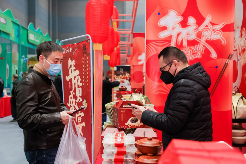 年貨節活動現場設置了“美食佳肴樂味購、智能幸福家惠民購、美酒飲品美味購、文旅助游鄉愁購、年俗年味歡樂購、鄉村共富助農購”六大區塊約60個展位。展品囊括了美食酒水、出游服務、非遺文創、禮品禮盒、汽車家電等,以滿足市民的一站式購物需求。