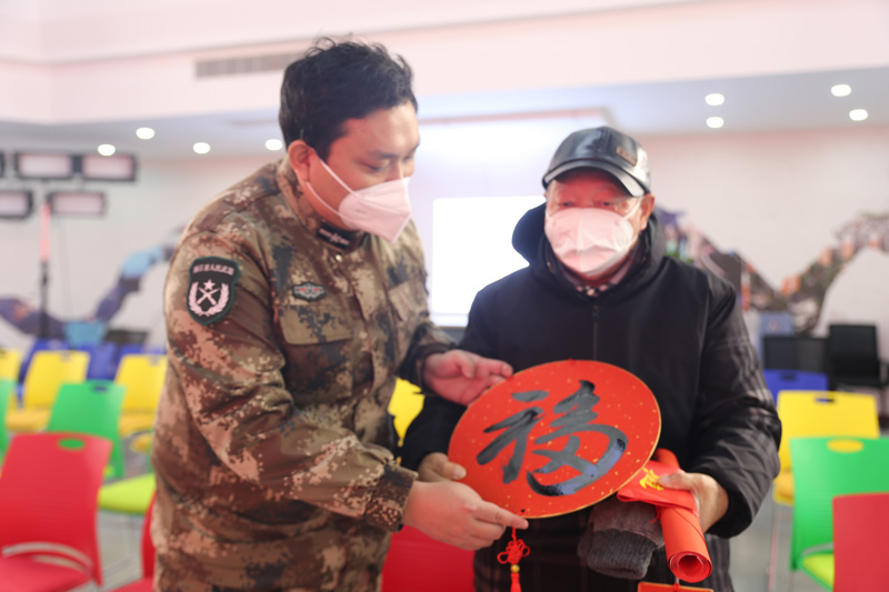 在當天下午的“春聯萬家·致敬人民消防”活動以及“春聯萬家·致敬白衣天使”活動中,畫師們還為消防指戰員和醫護人員現場授課,指導他們拿起毛筆,在寫“?!弊种忻枥L新年愿景?!拔覀児操浰土藢β?80幅、‘?!?00幅、書法燈籠358個,很高興通過發揮特長,為退役軍人們送上節日的關懷?!被顒迂撠熑送跫揪暾f。(梁亦慰)