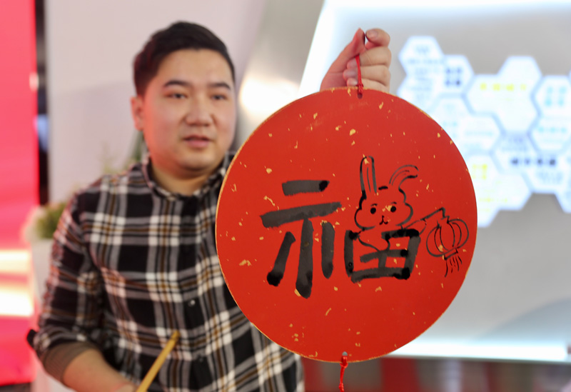 融入兔年元素的“?!弊?。路橋街道供圖