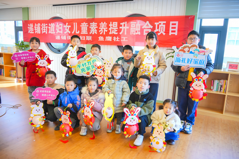 近日,湖州安吉遞鋪街道婦聯、團委和工會共同組織在遞鋪街道婦兒驛站開展“把愛帶回家,暖心護成長”寒假兒童關愛活動。此次活動邀請10組親子家庭制作兔年手工燈籠,讓孩子們感受即將到來的新春兔年的濃厚氛圍。
