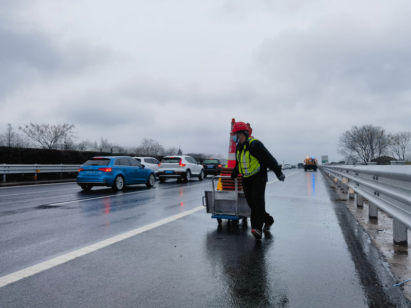 車流集中加上連日雨霧天氣,稍微不注意就容易引發追尾、碰刮等事故。為有效管控主線大流量,減少主線擁堵和事故的發生,湖州管理中心采用了路面渠化與收費站入口管控相結合的管控模式對重點路段進行精準控流,通過渠化措施讓車道流量、速度維持在穩定運行水平,起到防止超車、加塞的目的。同時,湖州管理中心還將全部保暢力量壓在路上,在隧道、樞紐等重點路段做好預警,部分預警、施救等力量分段上路預警巡查,與主線監控形成動態微循環,一旦發現主線事故就能第一時間進行救援處置,避免二次事故。