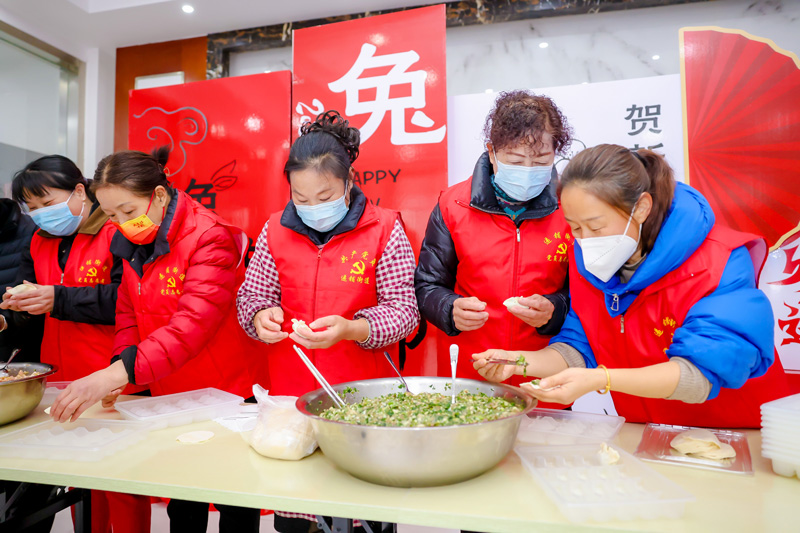 遞鋪街道霧山寺文化禮堂內開展了“包餃子 鬧新春”活動。志愿者和村民們有的負責洗菜、有的負責調餡、有的負責包餃子,個個動作嫻熟,現場其樂融融。隨后,志愿者們還將包好的餃子送到轄區內的孤寡老人、困難老黨員等家中,與他們一起分享節日的喜悅。