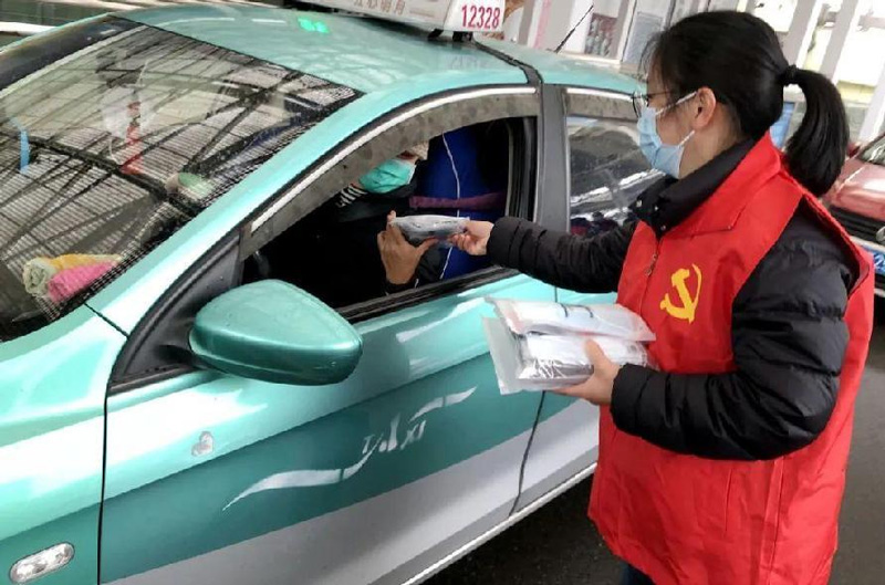 為出租車駕駛員送上口罩。浙江移動供圖