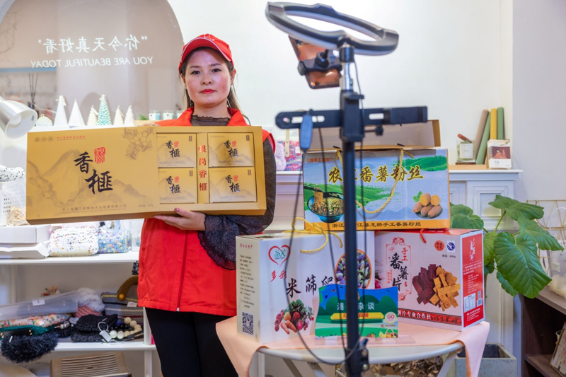 “香溢”志愿服務隊開展農特產品直播帶貨。樓松文攝