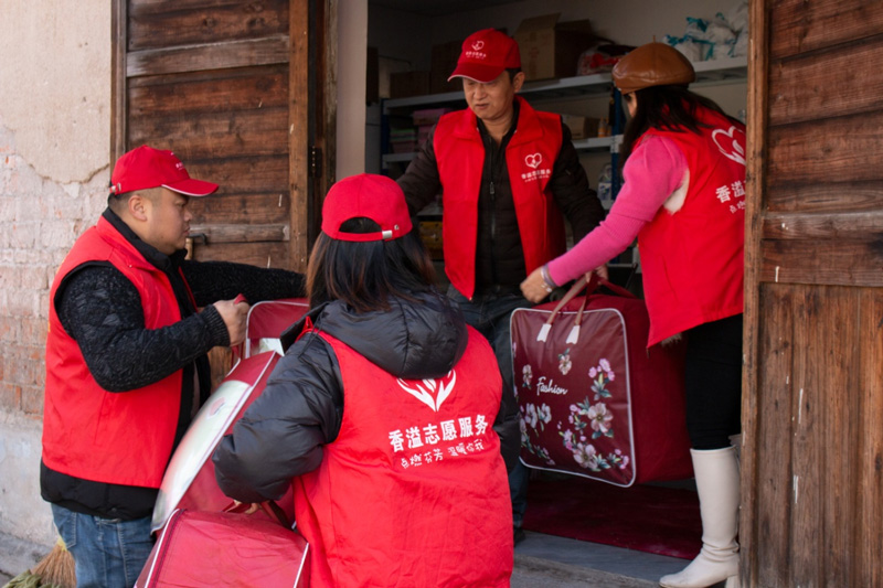 陳文海一家是向浦江縣檀溪鎮社工站求助的家庭之一。通過社工站提交的求助名單,“香溢”志愿服務隊了解到像陳文海這樣的困難家庭。服務隊迅速行動,為他們送上了裝有蘋果、暖水袋、棉被等的“暖心包”。