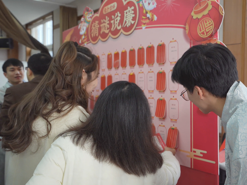 活動現場,120條廉潔燈謎依次懸掛,謎面和謎底涵蓋黨紀條規、紀法知識、廉潔文化等內容,設計巧妙的謎題引起了“圍觀群眾”的熱烈討論。干部職工一起猜謎語、解謎題,在感受傳統民俗的魅力中汲取崇德尚廉正能量。