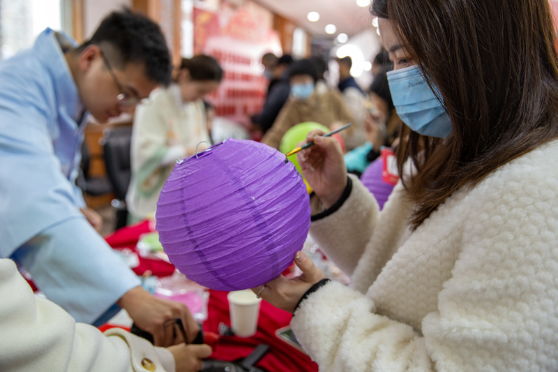 職工在“花燈繪廉”活動現場繪制“廉”味燈籠。麗水市煙草專賣局供圖