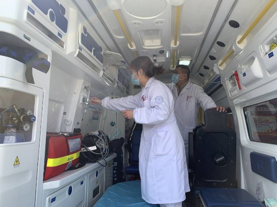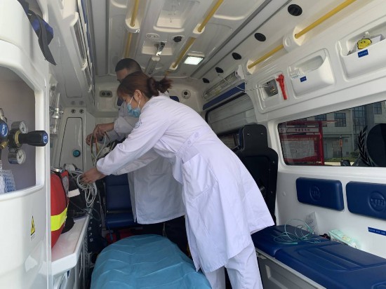 醫護人員檢查急救車上的設備。瑞安市委宣傳部供圖