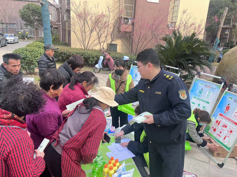 為進一步傳承弘揚雷鋒精神,踐行垃圾分類綠色環保理念,2月27日,湖州市南潯區雙林鎮分類辦聯合雙林執法中隊及分類工作者開展了“春風送暖學雷鋒,垃圾分類我先行”垃圾分類主題宣傳活動,旨在通過普及居民垃圾分類常識,倡導文明生活好習慣,進一步推進轄區垃圾分類常態化。