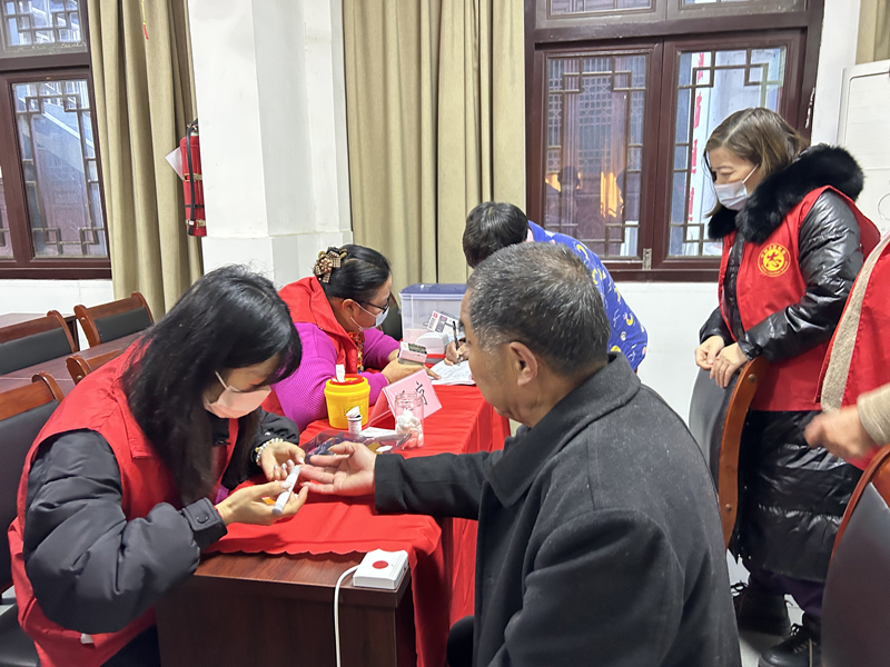 志愿者們為老人測量血糖。雙林鎮供圖