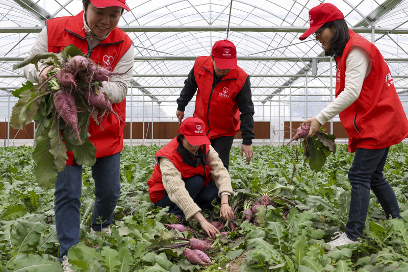 哪里有需要,哪里就有“香溢”志愿服務隊的身影。他們有的負責拔蘿卜、剔葉,有的負責裝袋、搬運,有的負責栽番茄苗……忙完采摘忙播種,紅色身影不斷穿梭在農作物間。