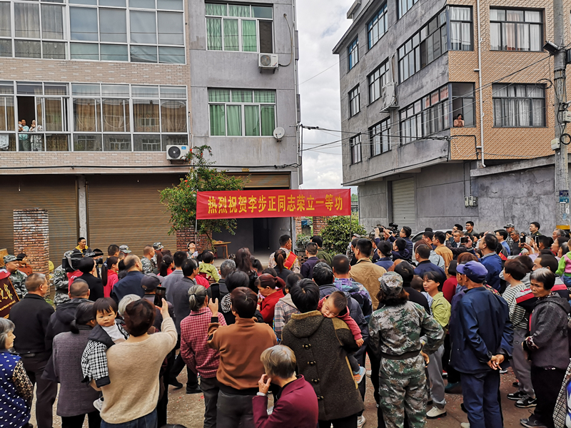 聽說村里出了位一等功臣,村民們都趕來祝賀。受訪者供圖