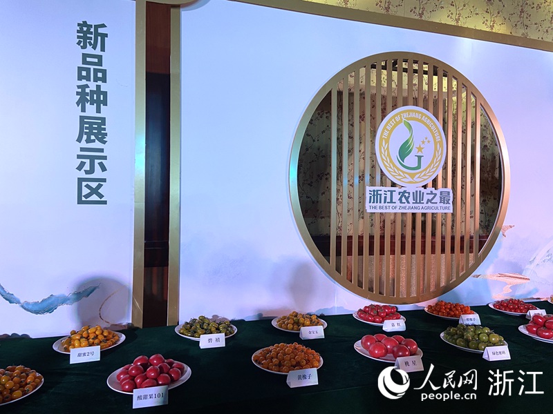 擂臺賽現場的番茄新品種展示區陳列著來自浙江省各地的番茄新品種。人民網 方彭依夢攝