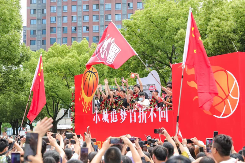 回浦中學男籃奪冠慶祝巡游。臨海市融媒體中心供圖