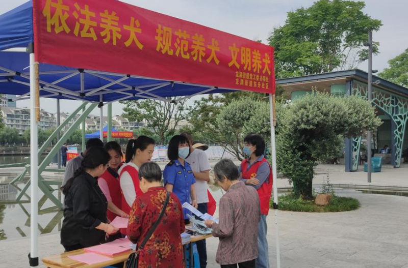 5月16日,龍泉市綜合行政執法局聯合龍淵街道東升社區在江濱北路設攤宣傳,向過往市民講解發放文明養犬宣傳手冊,號召市民簽訂《龍泉市城區養犬承諾書》,依法、規范、文明養犬。