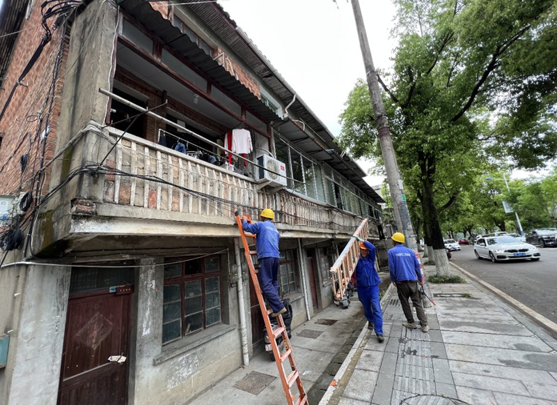 現場,工作人員對東小區內的架空管線開展集中專項整治,改造或拆除空中橫跨街道、巷道的各類架空管線,采取“去除費線、歸并散線、檐下走線、合理入地、管線呈景”的方法進行整治,基本消除影響城市景觀和安全的“線亂拉”現象,確保管線整齊、美觀、安全。
