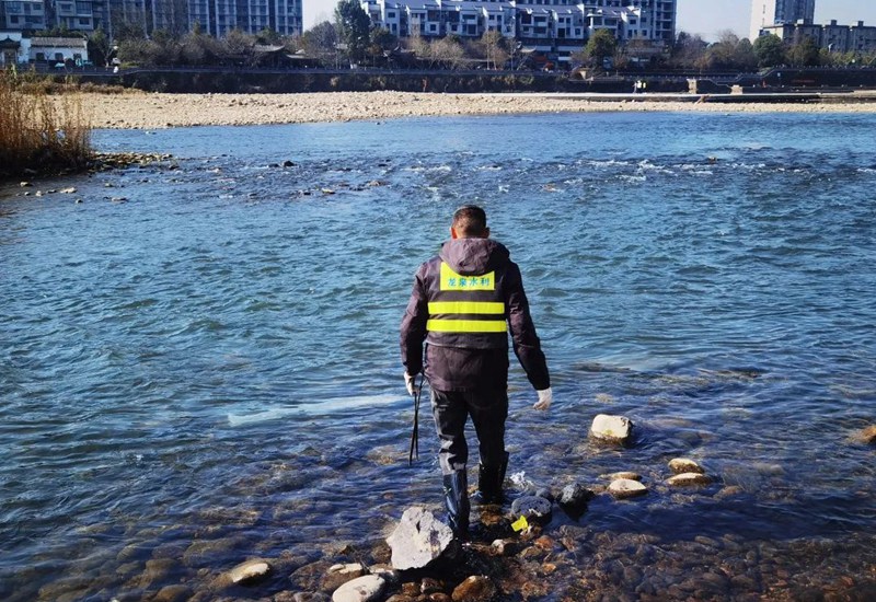 河道管護員正在清理河道垃圾。龍泉市委宣傳部供圖