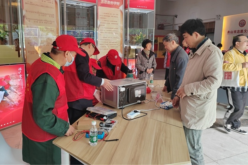 志愿者為附近居民修理小家電。舟山市煙草專賣局供圖