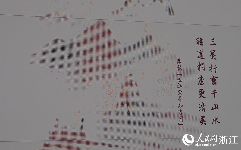 銅雕山水屏風、枯山水盆景、3D轉印江景圖及古詩文……走進桐廬東站,映入眼簾的便是細致入微的富春山水元素,這里已經成為了對外展現當地山水美景的一扇“重要窗口”。
