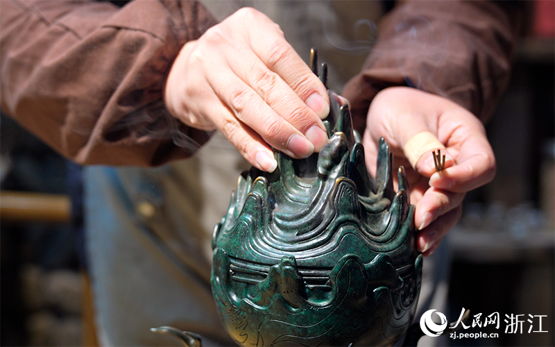 王寧展示焚香技藝。人民網 艾宇韜攝