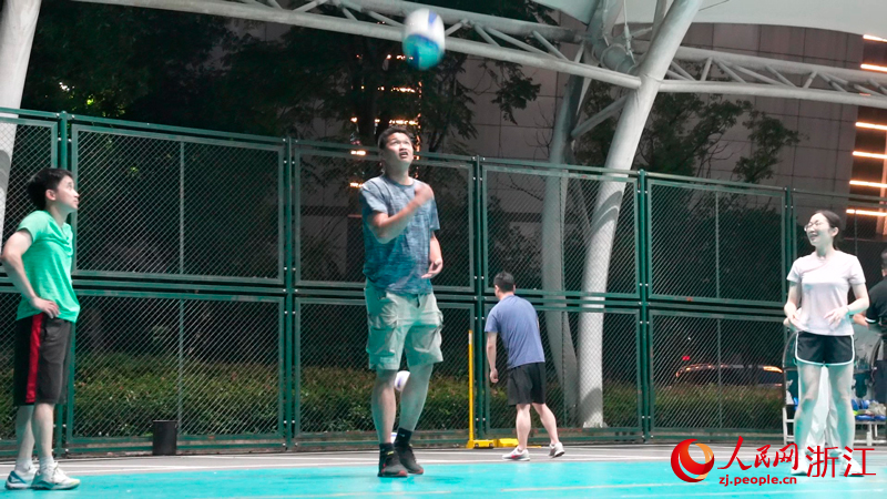 “他們打的是氣排球,速度沒有排球快,易上手,適合的年齡段也較廣?!毙煨”忉尩?。原先,這里是停車場,他看到當地排球愛好者很難找到一些正規的運動場地,便自己用塑膠鋪出了如今的四塊標準排球場,之后又找來了攔網、排球等器械設備,自己偶爾也會下場指導規范動作?!斑@些愛好者對排球的熱情很高,也會經常組隊參加比賽,我也正好用自己的一技之長,促進本地的排球運動氛圍?!毙煨”f。