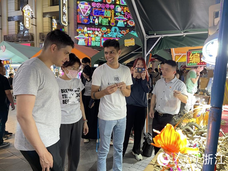 來自美國的中國日報網資深編輯杜威是此次“你好,碳中和”主題調研團隊的一員,這是他第二次來到杭州。上一次來,他去西湖坐了游船,賞了美景,這一次,他在武林夜市感受了一回“杭州煙火氣”。