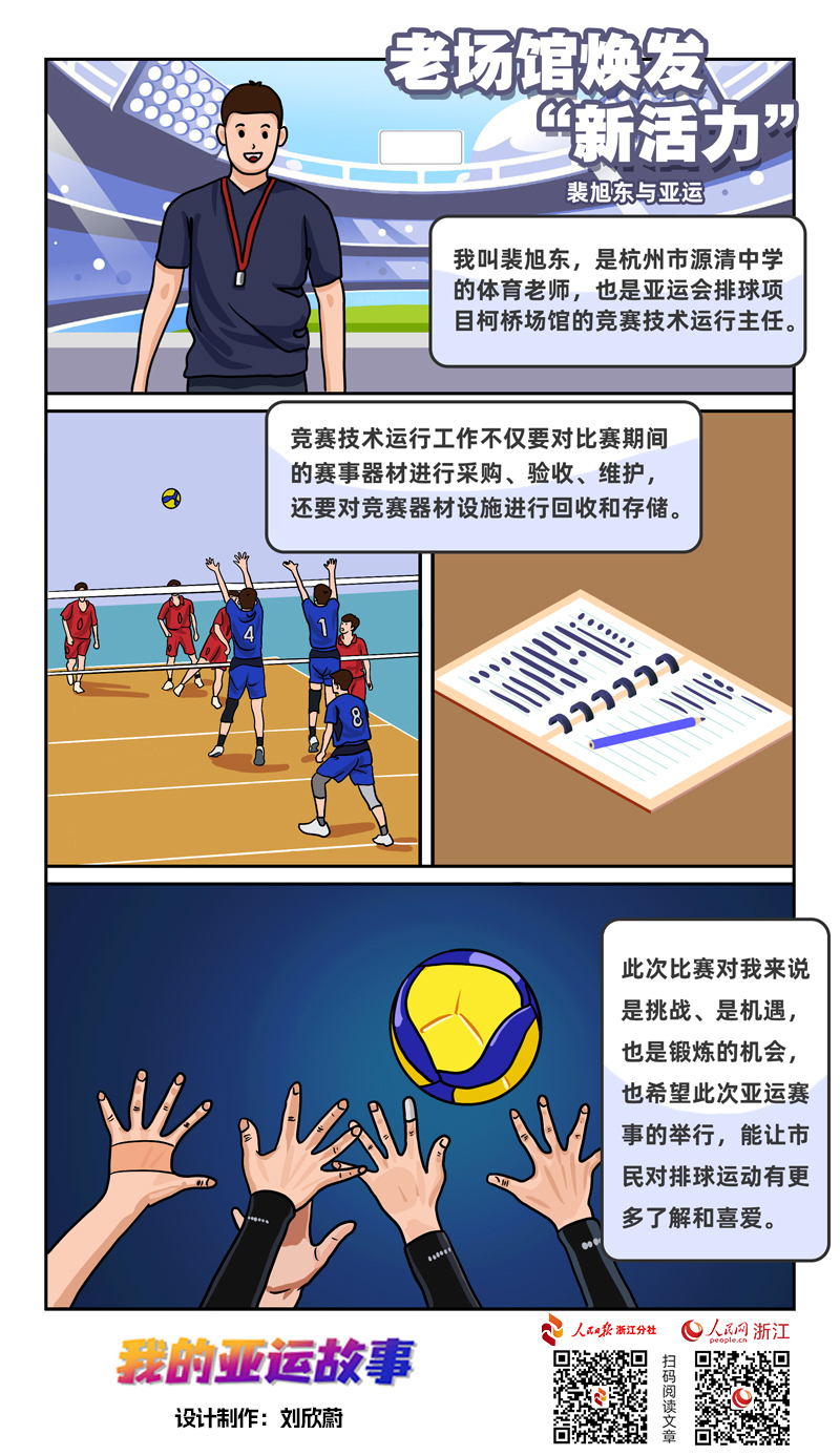 2023年,柯橋承辦杭州亞運會排球項目小組賽是歷史首次,對裴旭東來說是挑戰、是機遇,也是鍛煉的機會?!拔覀儚闹行枰獙W習的東西很多,盡可能地去了解賽事,把整個賽事組織好?!迸嵝駯|表示,希望此次亞運賽事的舉行,能讓市民對排球運動有更多了解和喜愛。