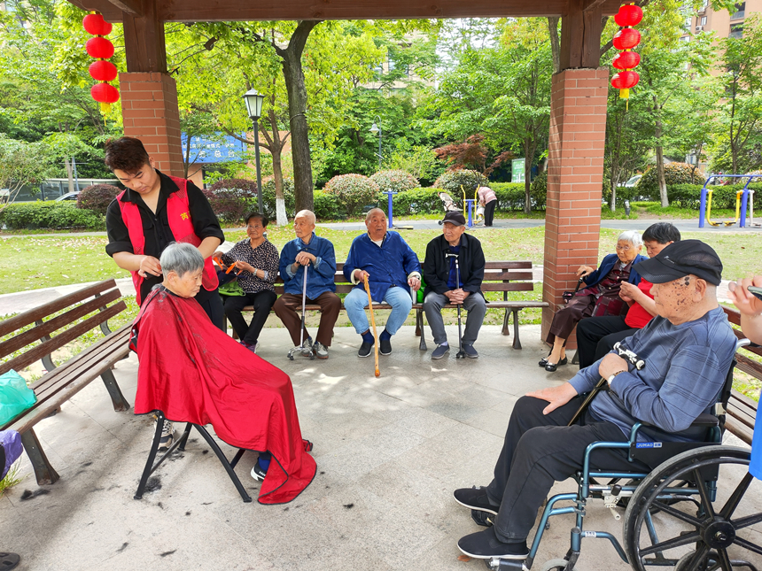 杭州市上城區望江街道每月免費為老人提供理發服務。徐嘉琪攝
