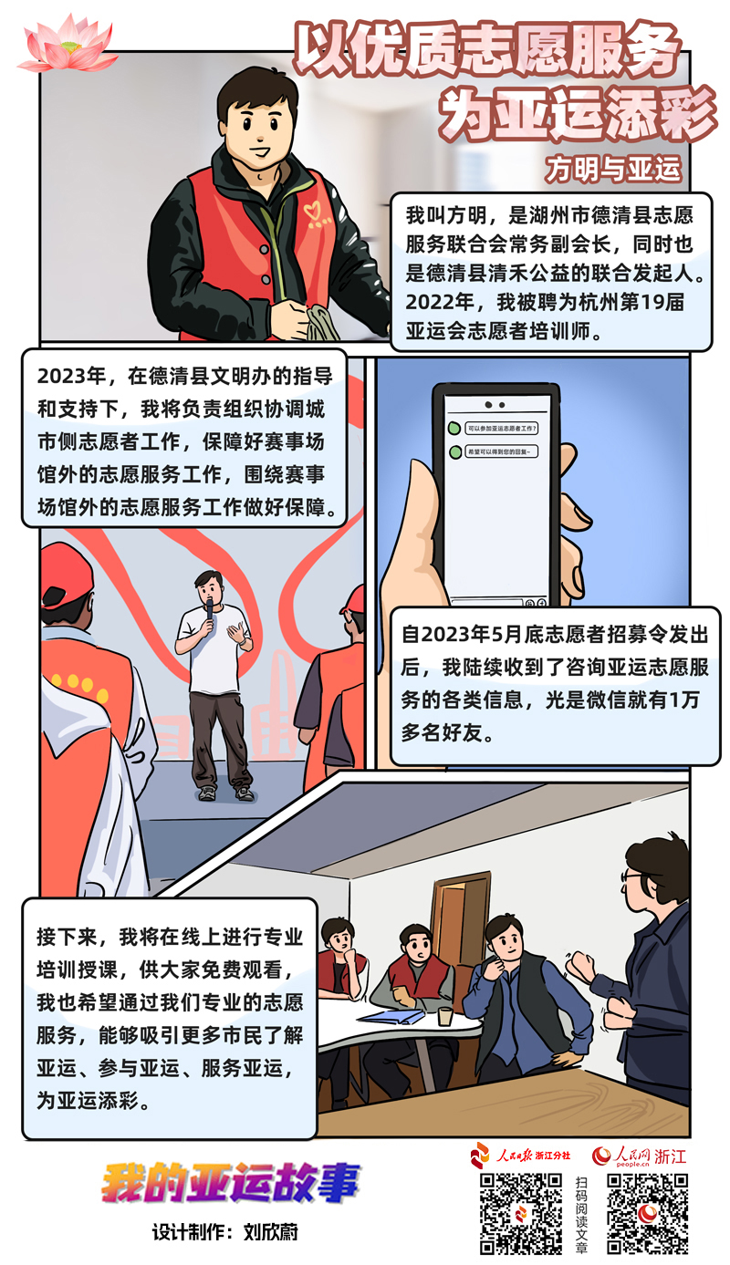 2023年,方明又有了新任務。在德清縣文明辦的指導和支持下,他將負責組織協調城市側志愿者工作,保障好賽事場館外的志愿服務工作。