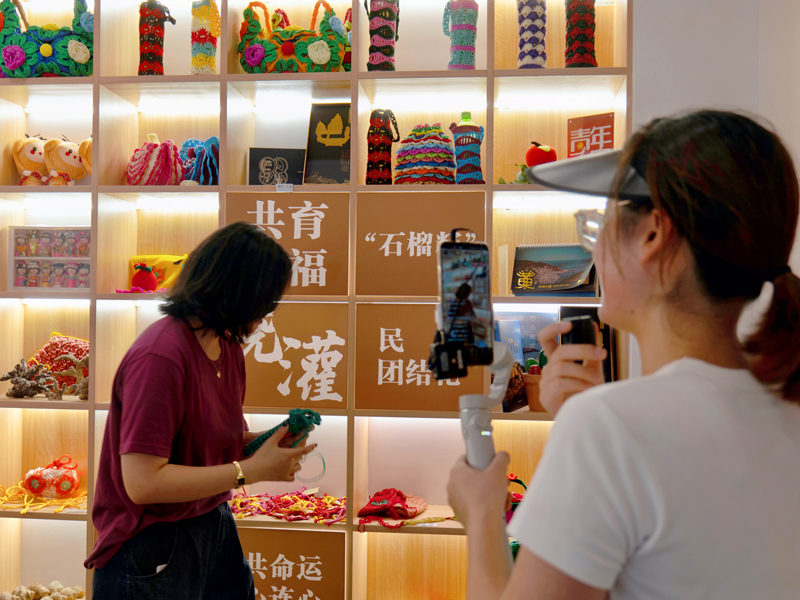 “歡迎來到我們直播間,這是黃龍漁繩結,是一種非遺工藝,現在它被做成了各種各樣的文創產品……”“漁你一young”黃龍青年人才直播間內,主播陳璐池和劉家騰正在推介家鄉的共富產品。