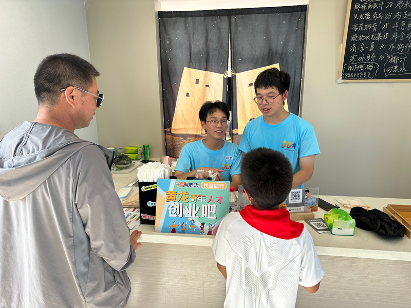 為鼓勵青年人才創業,黃龍鄉在重點打造的大鉗風情海岬區域內,建立了一家“舟創未來 共富同行”主題青年人才創業吧,在黃龍鄉政府的支持下開啟了創業之旅。大學生創業者將目標用戶鎖定年輕人,提供蛋糕、炸雞、鮮榨果汁等食品,在實現自我價值的同時,也進一步豐富了黃龍島業態。
