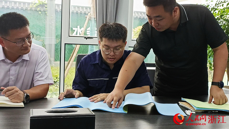 工作中的鄔家寧(左二)。人民網 劉欣蔚攝