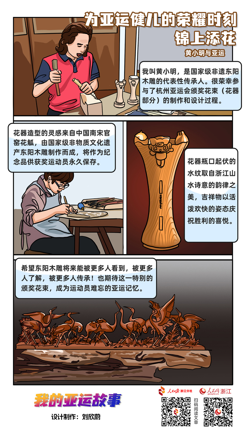 “在一場體育盛會中作為頒獎物資去呈現,這對于有著1400余年歷史的東陽木雕來說,是一次走向世界的好機會?!秉S小明說,“衷心地祝愿杭州亞運會圓滿成功,也期待東陽木雕能夠被更多人關注、了解和傳承?!?/p>