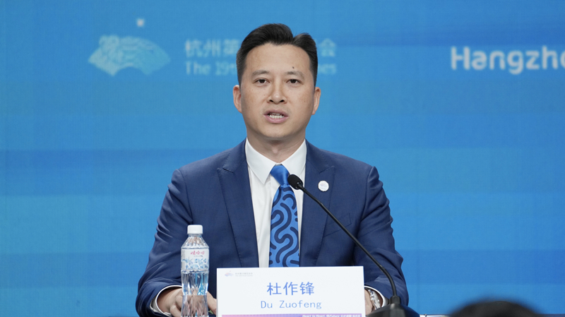 杭州亞運會火炬傳遞指揮中心副指揮長杜作鋒回答記者提問。方建飛攝