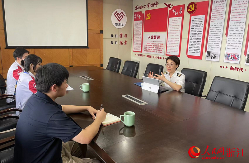 趙丹正在對參與亞運物資運輸的企業進行政策宣講。人民網記者 王麗瑋攝