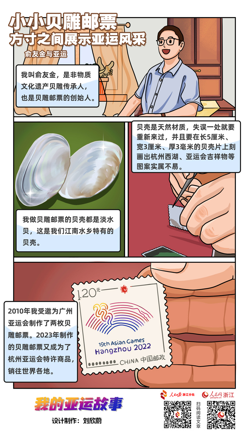 俞友金:小小貝雕郵票 方寸之間展示亞運風采
