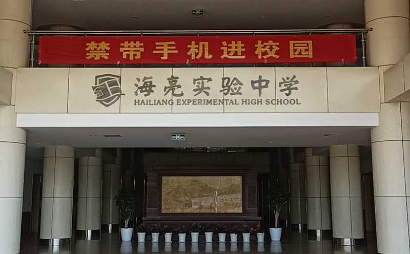 開學季,校園內放置了“禁帶手機進校園”的標語。海亮教育科技服務集團供圖