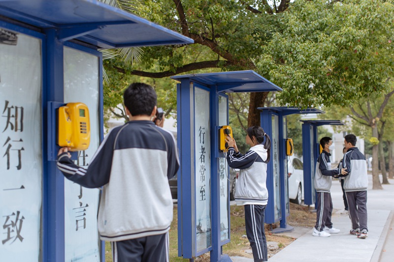 “針對這一點,家長們完全不必擔心。除了嘗試建立班主任電話熱線外,我們還在制度中明確,各學校應增設校內公共電話,充分保障學生與父母家人溝通的便捷性?!焙A两逃萍挤占瘓F助理總裁、海亮外語中學校長王婷婷介紹,“以我們學校為例,學校有50多臺公用電話,分布在教學樓、寢室樓及餐廳等點位,同學們如果有急事可以隨時免費撥打電話與家長進行溝通,確保家校間通訊的順暢。
