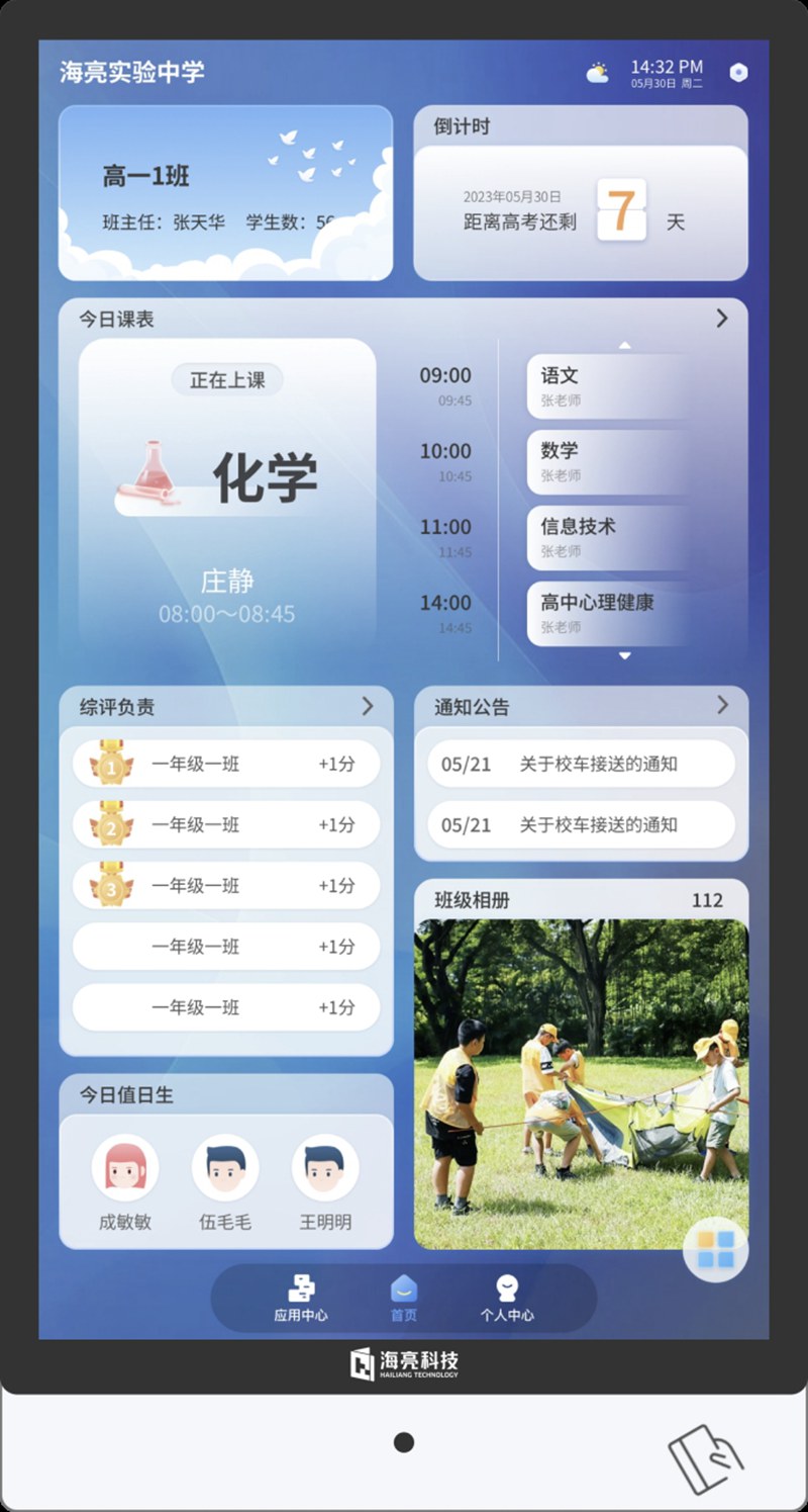 黃玲瑛介紹,“電子班牌”是由海亮教育科技服務集團自主研發的,除了“家?;ヂ摗?,還有“電子課表”“信息查詢”“簽到考勤”“德育管理”等多個模塊。
