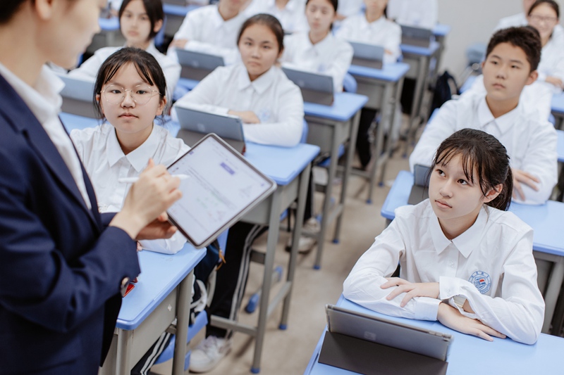“平板教學有相應的管理制度,設備上的軟件是有‘白名單’的,經過后臺審核篩選后,適合的內容將會推送給學生們?!蓖蹑面帽硎?,全面的平板教學系統旨在幫助教師更好地調動學生的課堂參與度,及時、準確、高效地掌握學生的學情數據,實現高效和精準的教學,從而幫助學生提升內驅力。