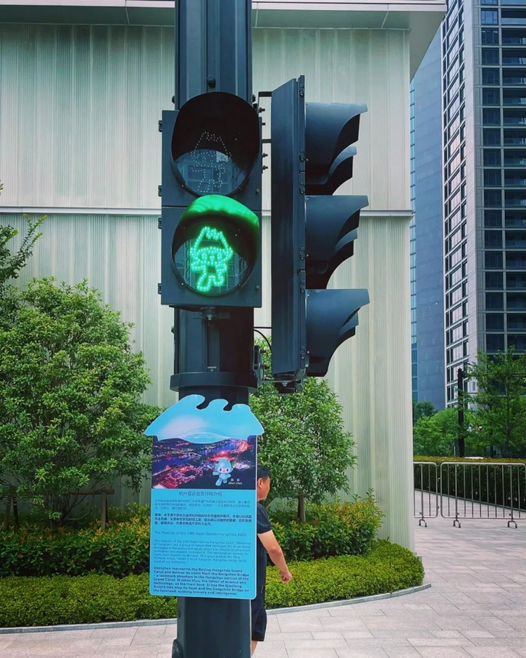 紅綠燈上的亞運“三小只”。杭州亞組委供圖