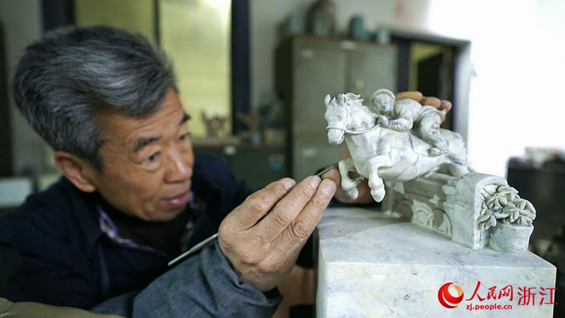 國家非遺傳承人錢高潮創作的亞運主題石雕。人民網記者 郭揚攝