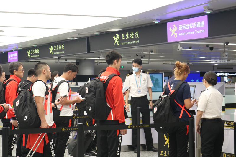 亞運人員通過海關亞運會專用通道抵杭入境。王軼星攝