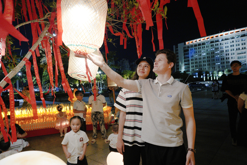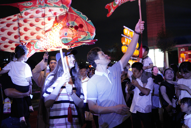 9月28日晚,國際友人akmal(阿珂姆)和Kamilya(卡咪拉)來到溫州蒼南縣中心湖廣場打卡“月滿山?!s耀蒼南”主題集市,與市民游客一起逛集市、看巡游、慶雙節,在豐富的活動中切身感受蒼南人民歡度中秋的濃厚氛圍。