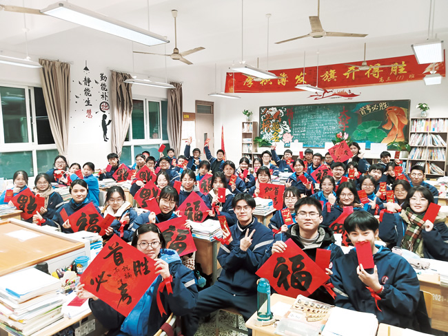 1月6日一早,金華一所高中為高三學子送上首考祝福。當天,2024年1月浙江省普通高校招生選考科目考試和普通高中學業水平考試拉開帷幕。