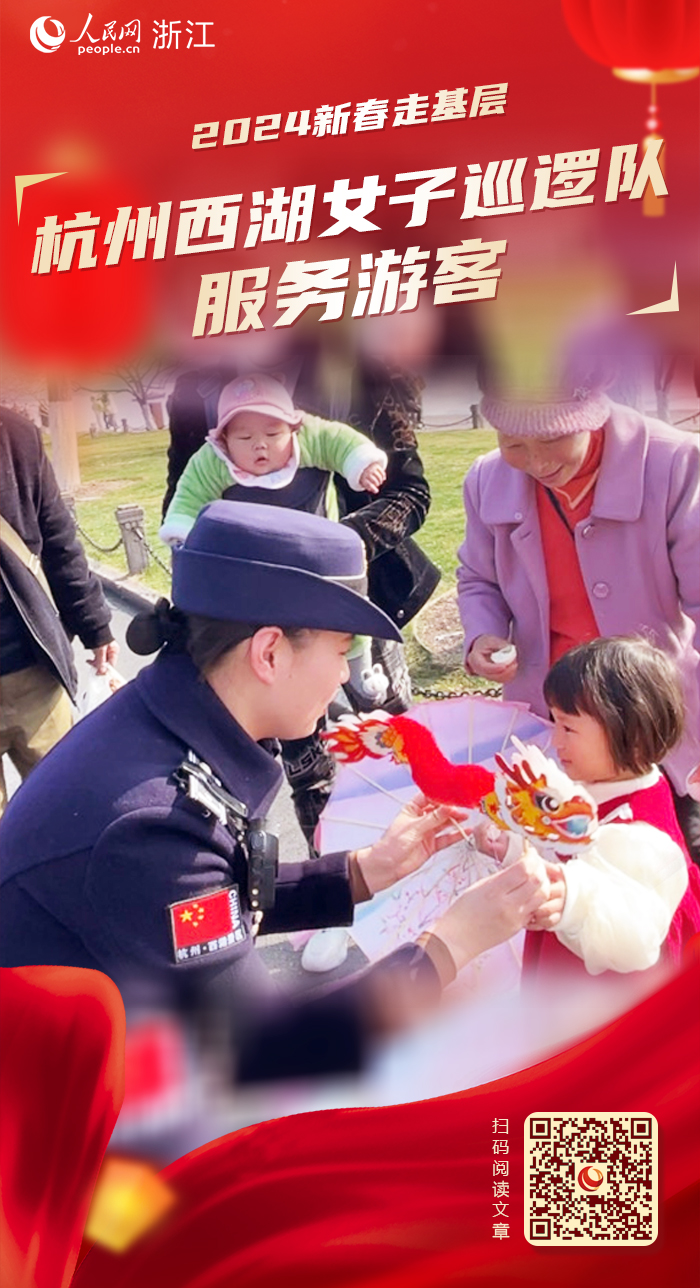 除此之外,西湖女子巡邏隊結合“大綜合一體化”行政執法改革,以“貼心服務+柔性管理”的工作法為載體,開展“非遺民俗辭舊歲 龍行龘龘迎新春”活動。在春節保障期間,西湖女子巡邏隊為市民游客提供咨詢服務與幫助、對不文明行為進行勸導、維護西湖景區面上管理秩序、配合處置突發事件,并提供《“小巡姐姐西游記”旅行服務手冊》、濕紙巾、果殼袋、暖寶寶等服務用品。同時,設置互動環節,抽取幸運游客贈送非遺手工剪紙舞龍和龍年文創貼紙,與市民分享美麗西湖的人文故事,送上新春祝福。