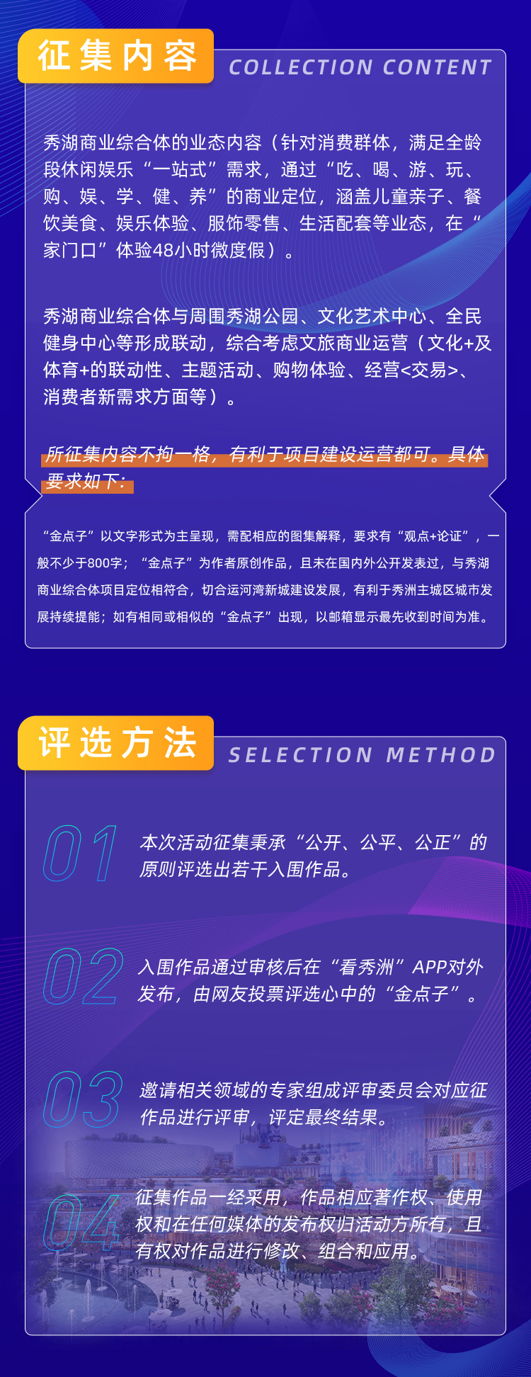 嘉興秀湖商業綜合體項目建設運營金點子征集活動開始啦!
